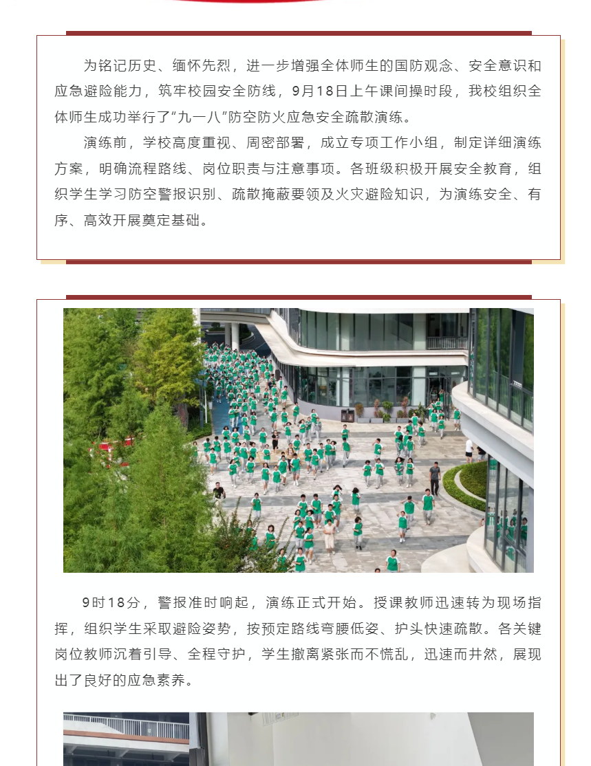 居安思危 警钟长鸣 | 我校成功举行“九一八”防空防火应急安全疏散演练
