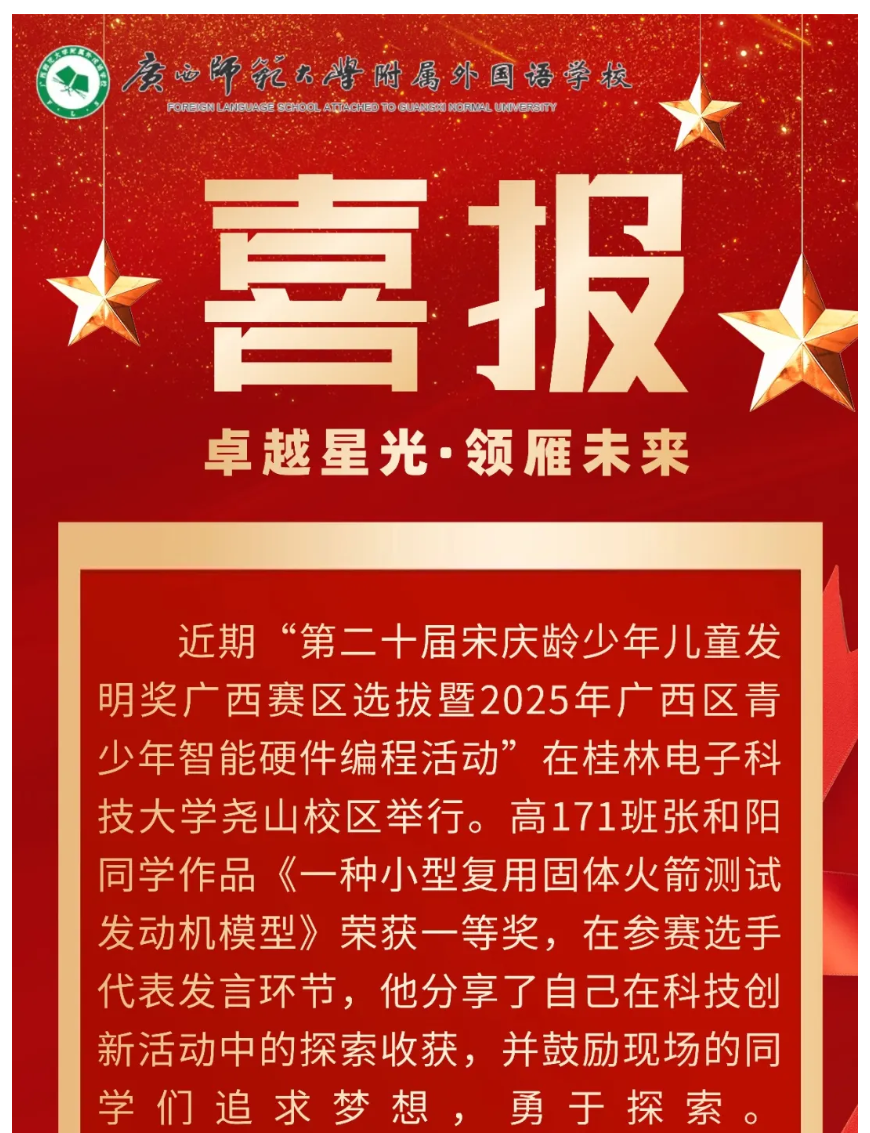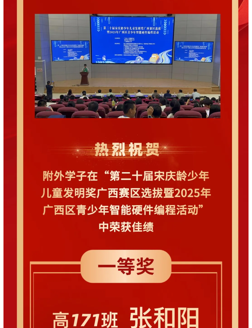 喜报|热烈祝贺我校学子荣获第二十届宋庆龄少年儿童发明奖广西赛区选拔赛一等奖