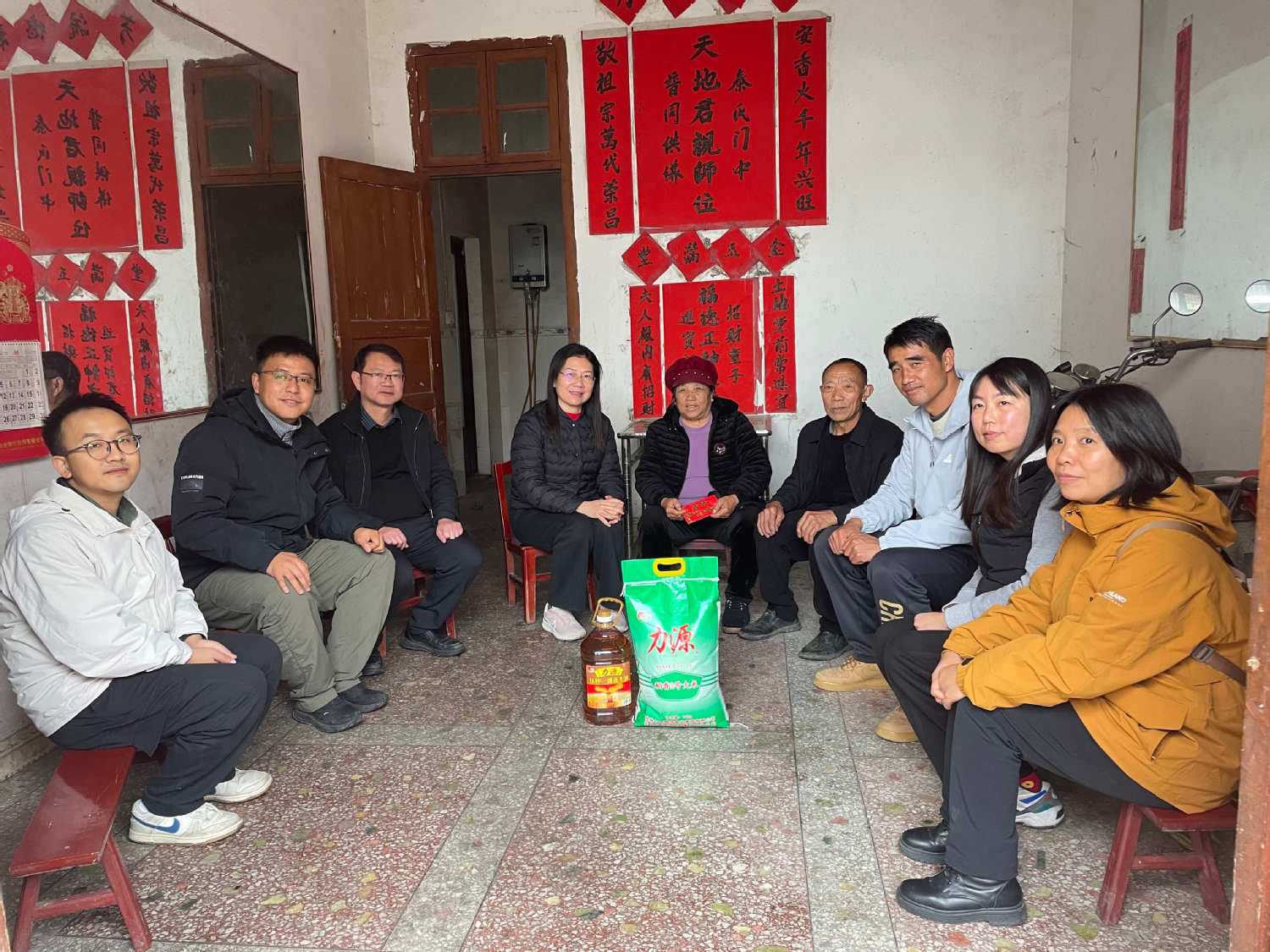 随后,在金山村第一书记及村干部陪同下,附属外国语学校一行深入帮扶户家中走访慰问,与帮扶对象围坐交流、亲切攀谈,细致询问其日常起居照料、就医、生活保障等实际难题与需求,用心倾听他们的心里话与现实诉求。同时,鼓励帮扶户保持积极乐观的生活态度,借助政策支持,逐步改善生活条件,奔向更美好的生活。附属外国语学校还为帮扶户送去了大米、食用油等生活慰问品。