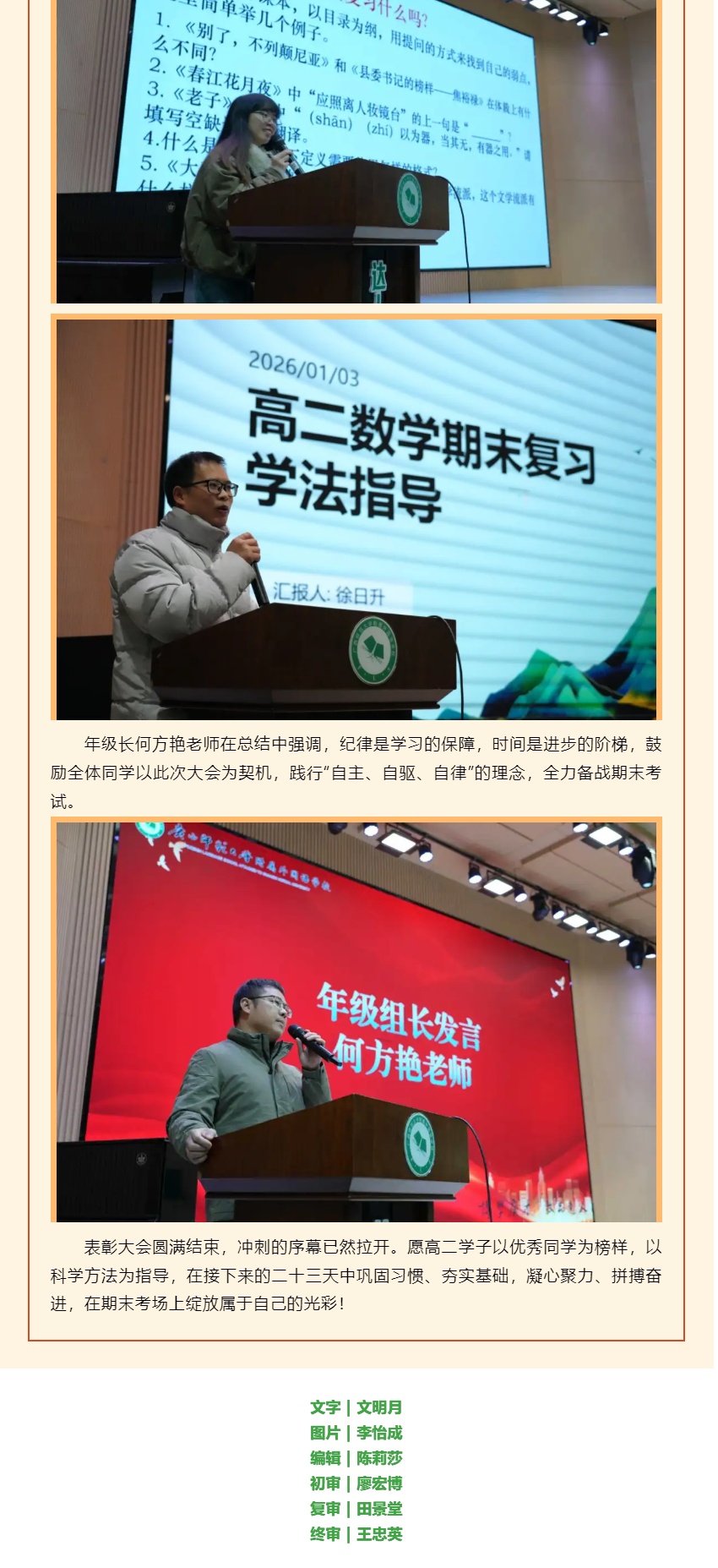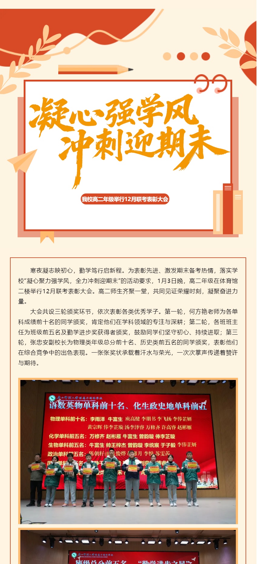 凝心强学风 冲刺迎期末|我校高二年级举行12月联考表彰大会