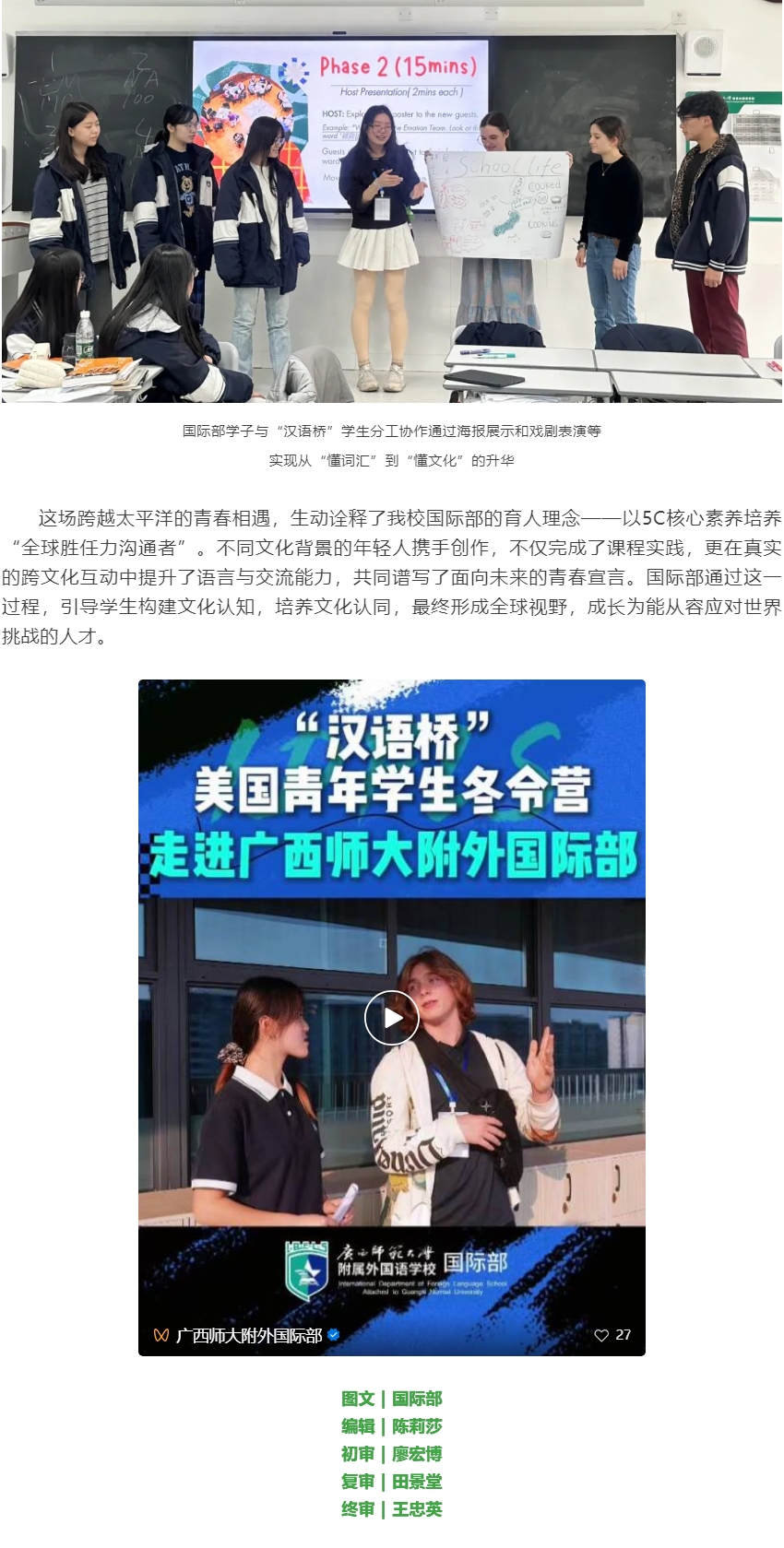 跨越山海,温馨相遇:美国“汉语桥”师生冬令营走进广西师大附外