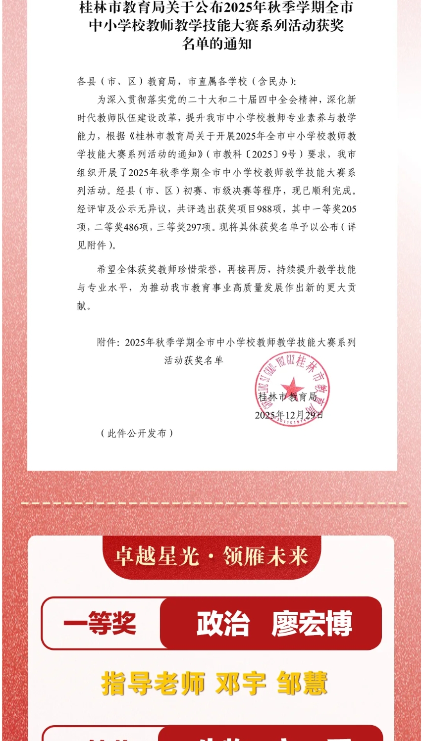 喜报|我校教师在2025年秋季学期桂林市中小学教师技能大赛系列活动中斩获佳绩