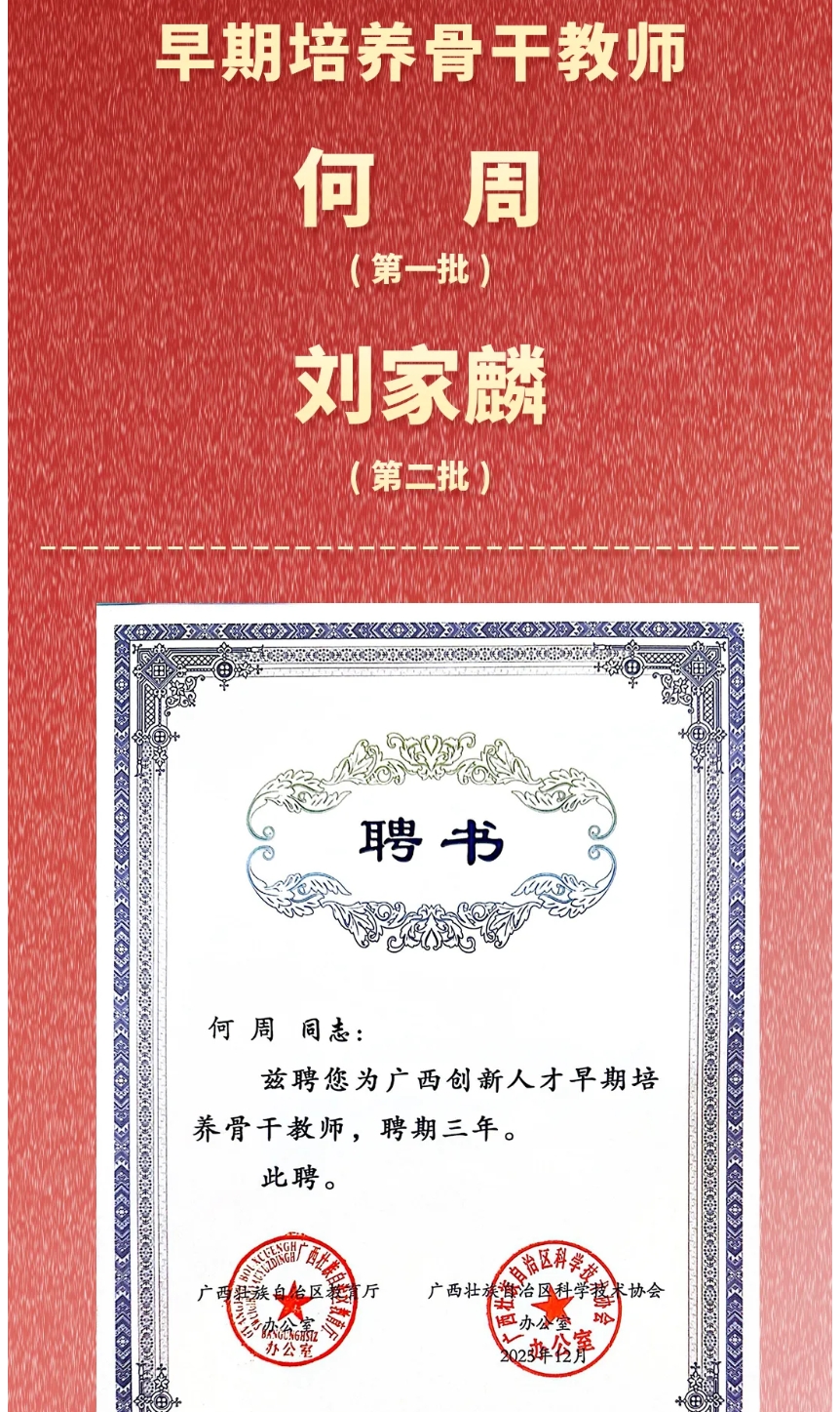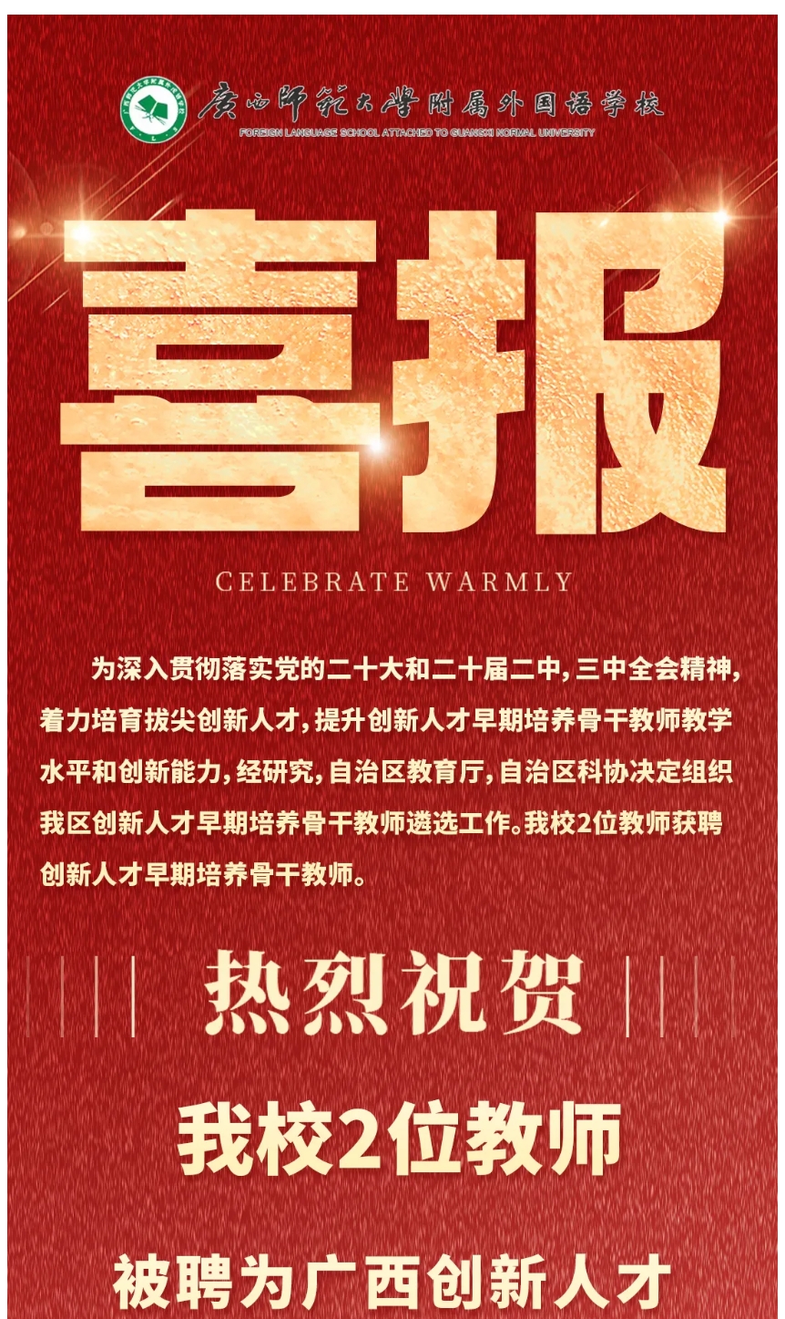 喜报|热烈祝贺我校2位教师被聘为广西创新人才早期培养骨干教师