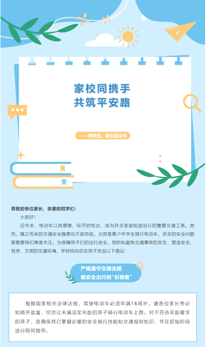 家校同携手 共筑平安路 | 致学生、家长倡议书