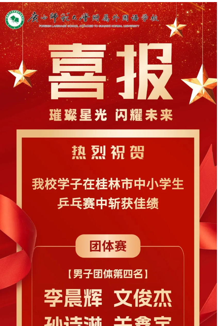 喜报|我校学子在桂林市中小学生乒乓赛中斩获佳绩