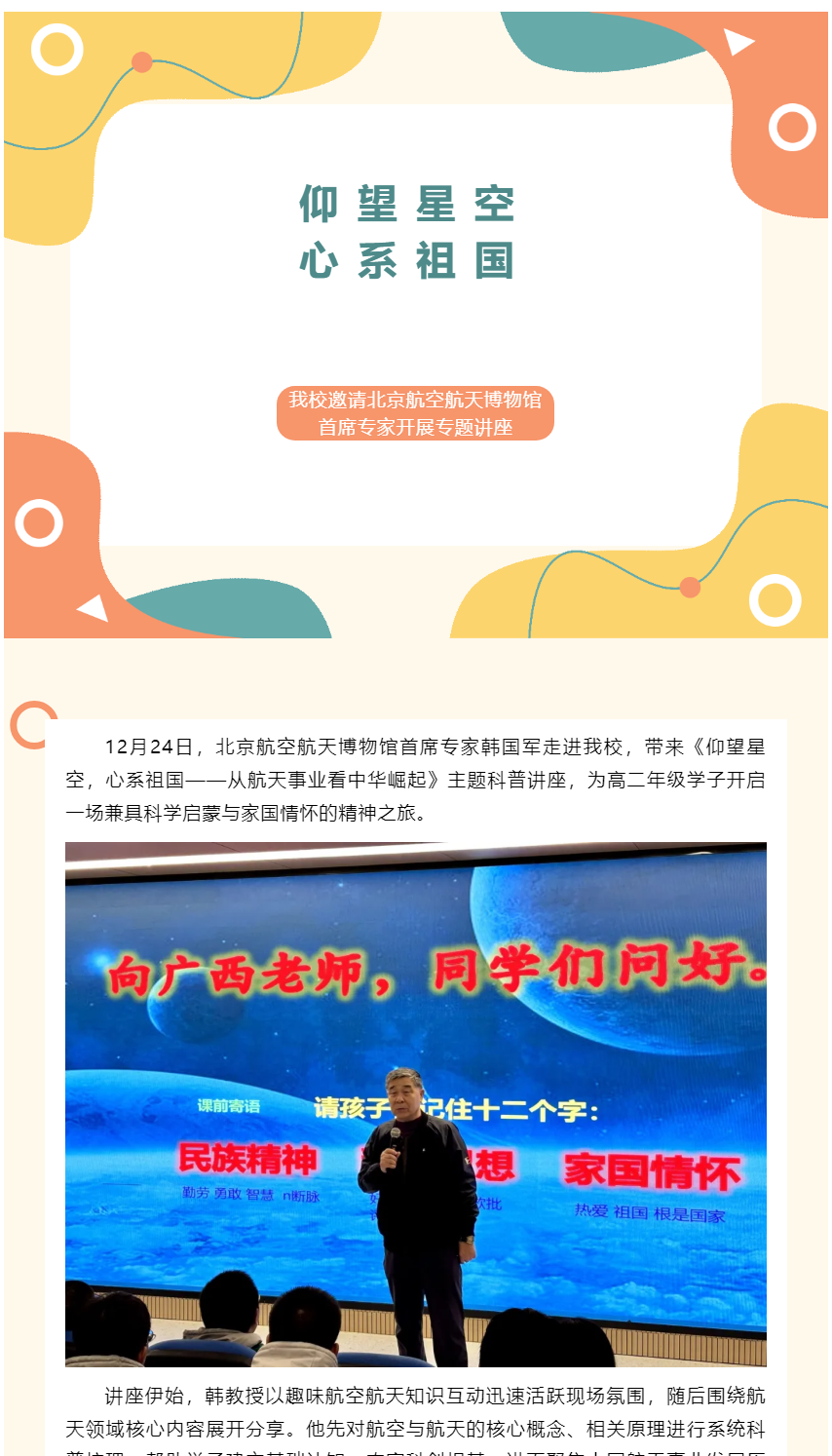 仰望星空 心系祖国|我校邀请北京航空航天博物馆首席专家开展专题讲座